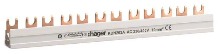 Hager Phasenschiene KDN263A 2-polig Gabel 10mm² 63A 12 Module, 210mm Länge, Kammschiene