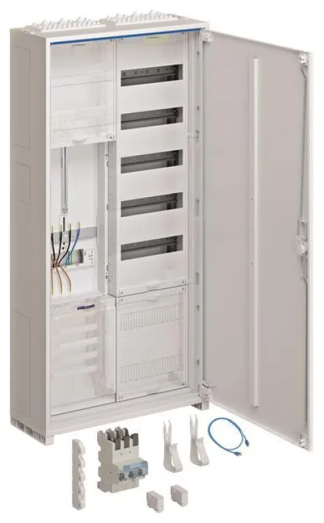 Mit kompakten Maßen (Höhe: 1100 mm, Breite: 550 mm, Tiefe: 205 mm) integriert sich der HAGER ZB323T15A Komplettschrank dezent in jede Elektroinstallation. Die Oberfläche in RAL 9010 (Reinweiß) sorgt für eine moderne Optik. Ob Einfamilienhaus, Mehrfamilienhaus, Büro oder Gewerbeimmobilie – dieser Schrank bietet maximale Sicherheit und Flexibilität für jede Zähleranlage.