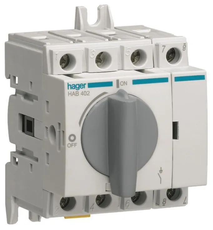 Hager Lasttrennschalter HAB402, 4-polig 20A, für Hutschiene oder Montageplatte