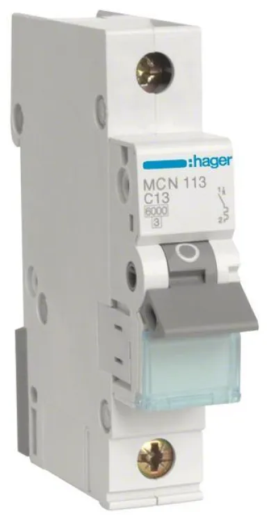 Der Hager Leitungsschutzschalter MCN113 schützt Ihre Elektroinstallation zuverlässig vor Überlast und Kurzschluss. Mit einem Bemessungsstrom von 13A, C-Charakteristik und einem hohen Schaltvermögen von 6kA ist dieser 1-polige Sicherungsautomat ideal für Wohngebäude, Büros und kleinere Gewerbebetriebe geeignet. Im Verteilerkasten sorgt der MCN113 für maximale Sicherheit und schützt Menschen, Geräte sowie Leitungen vor strombedingten Schäden.