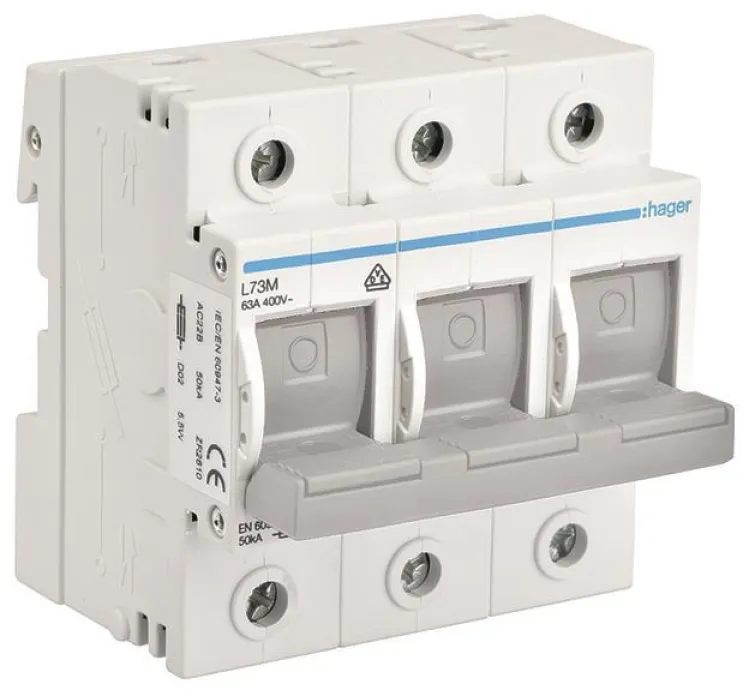 Der Hager L73M D0-Lasttrennschalter D02 3-polig 63A ist die ideale Lösung für den sicheren und effizienten Schutz elektrischer Anlagen in Wohngebäuden, Gewerbe und Industrie. Das hochwertige Schalter-Sicherungs-Unterteil wurde speziell für den Einsatz mit D02-Sicherungen entwickelt und überzeugt durch zuverlässige Technik, hohe Sicherheit und eine anwenderfreundliche Handhabung.