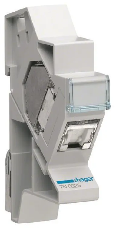 Hager Patchmodul TN002S, RJ45 Buchse Cat6 STP, für Hutschienenmontage