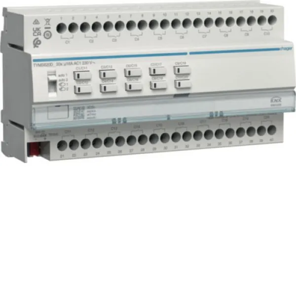 Der HAGER TYMS620D Schalt- und Jalousieaktor KNX Secure ist die innovative Lösung für die sichere und flexible Steuerung elektrischer Verbraucher sowie Jalousieantriebe in modernen Smart-Home- und Gewerbeinstallationen. Mit bis zu 20 Kanälen und einer Schaltleistung von 16A pro Kanal bietet dieses Reiheneinbaugerät maximale Vielseitigkeit und Zuverlässigkeit für anspruchsvolle KNX-Gebäudetechnik.
