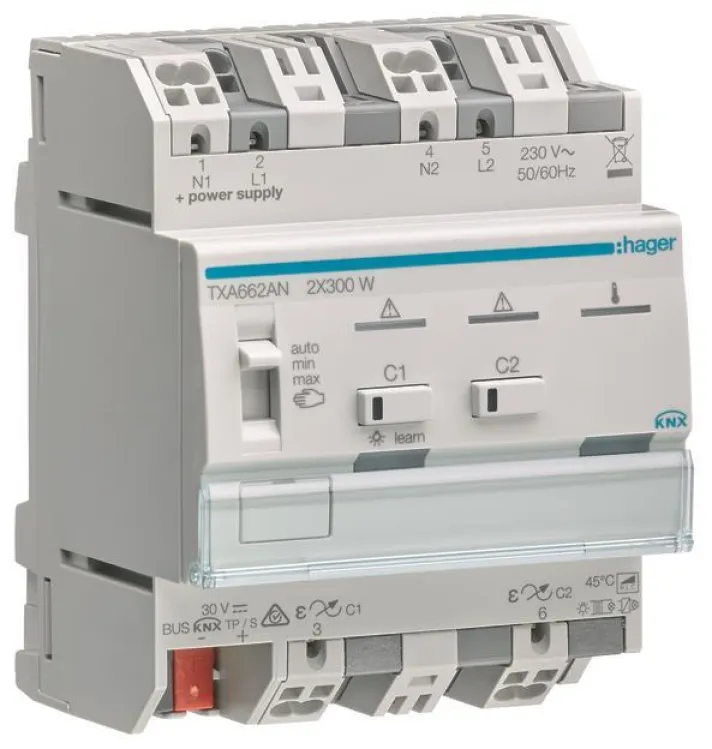 Setzen Sie auf höchste Effizienz und intelligente Gebäudetechnologie – der Hager KNX Dimmaktor TXA662AN ist Ihre Lösung für moderne Lichtsteuerung!