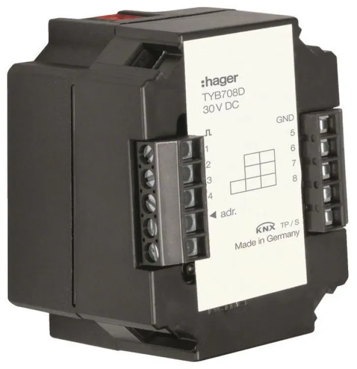 Die Hager Universal-Schnittstelle TYB708D 8-fach KNX Unterputz ist die ideale Lösung für die moderne KNX-Gebäudeautomation. Mit diesem vielseitigen Modul verbinden Sie konventionelle Taster, Schalter oder LED-Anzeigen zuverlässig mit Ihrem KNX-System und profitieren von maximaler Flexibilität bei der Haus- und Gebäudesteuerung.