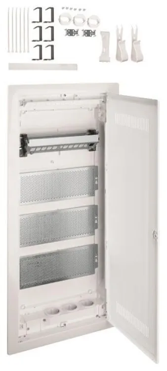 Der HAGER VU48WWH Multimediaverteiler ist die moderne Lösung für die strukturierte Integration von Kommunikations- und Stromanschlüssen im Wohnbereich. Mit vier Reihen und 48 Teilungseinheiten bietet der Unterputzverteiler ausreichend Platz für Multimedia-, Netzwerk- und Elektroinstallationen. Dank durchdachter Bauweise unterstützt er eine optimale Signalverteilung und sorgt für eine zuverlässige Funkabdeckung – ideal für Smart Homes und zukunftssichere Wohnkonzepte.