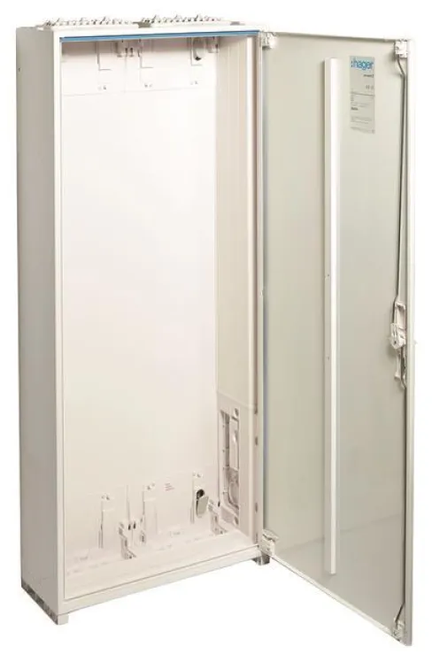 Mit großzügigen Abmessungen von 1250 x 550 x 205 mm und zwei Einbaufeldern (192 Platzeinheiten) bietet der Hager ZB42S ausreichend Platz für umfangreiche Zähler- und Verteileranlagen bis 355 A und 230/400 V (50 Hz). Die clevere Konstruktion erleichtert die Installation und ermöglicht eine einfache Integration von Zubehör wie Steckdosen, Sammelschienen oder Verbindungssätzen.