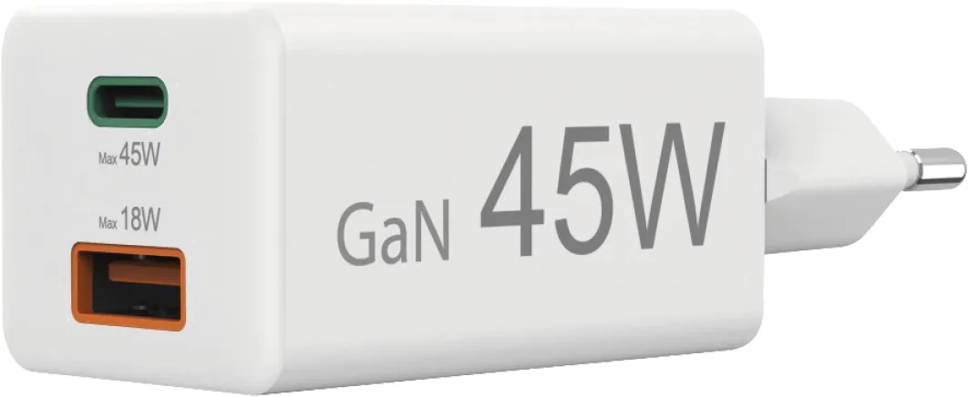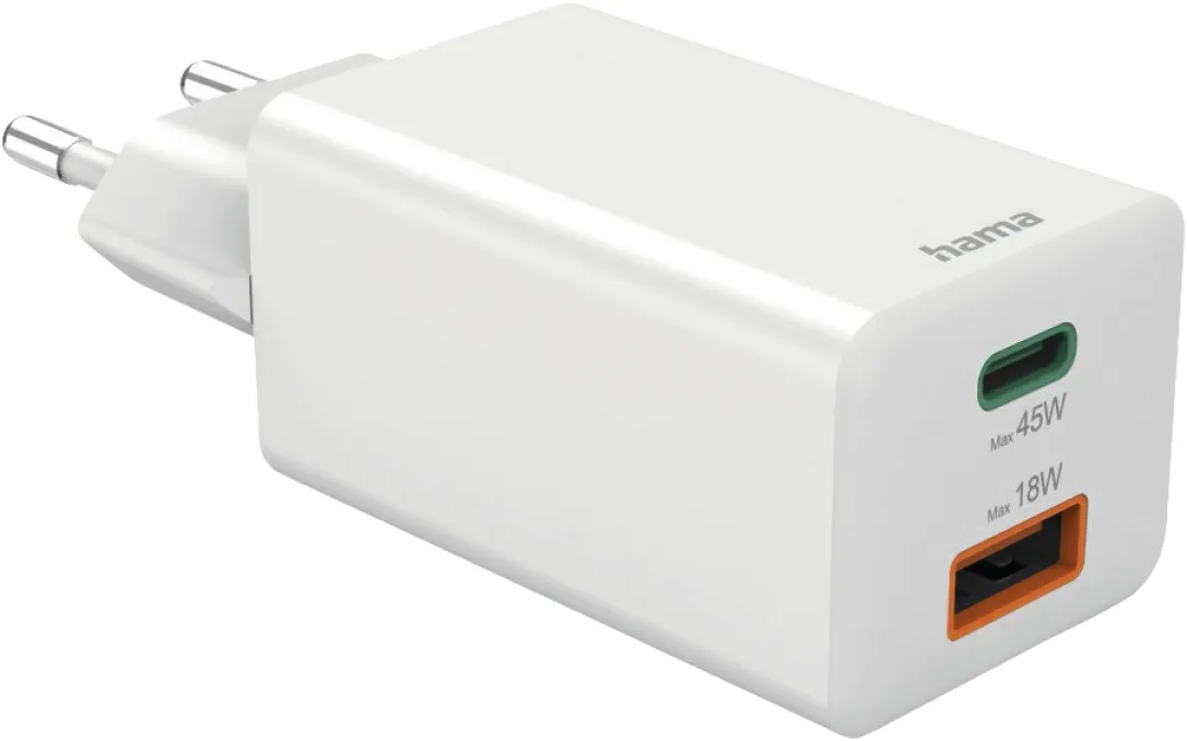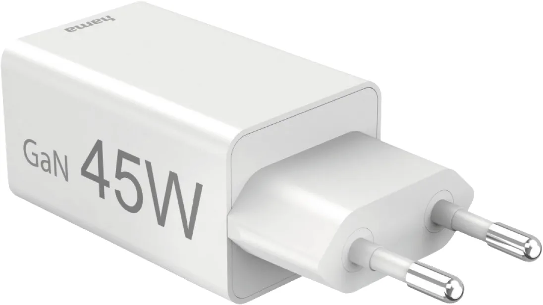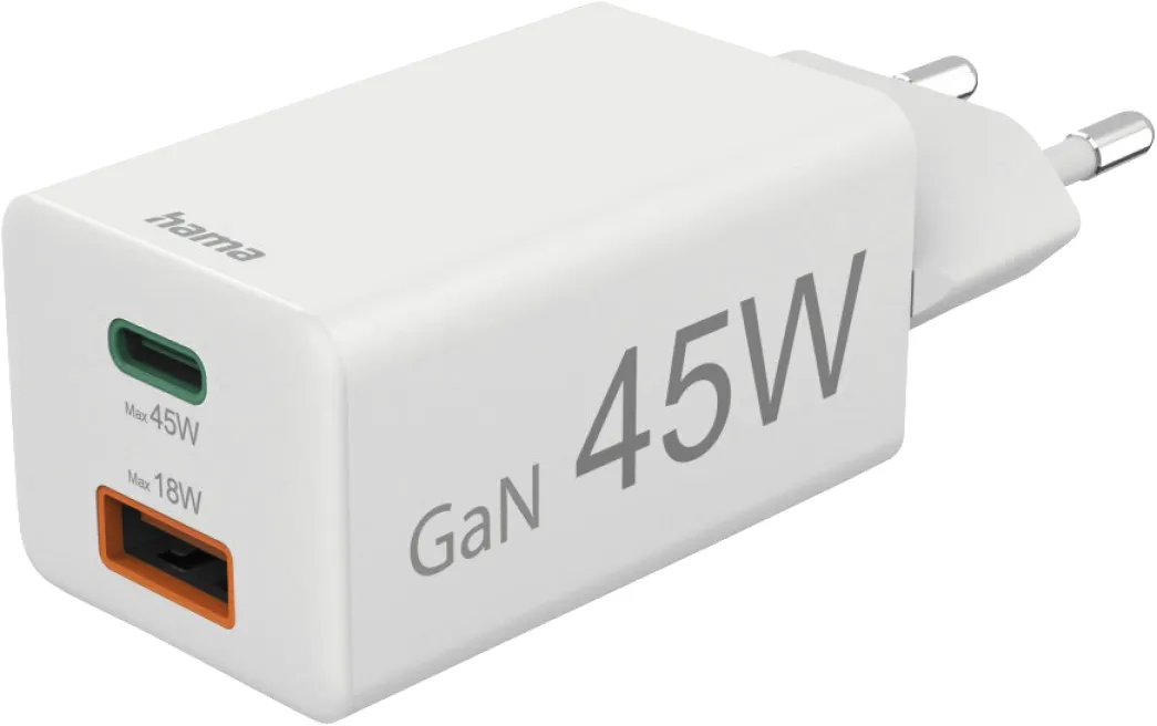 Hama Schnellladegerät 00201993, 45W GaN USB-C PD & USB-A QC 3.0, Mini-Ladegerät