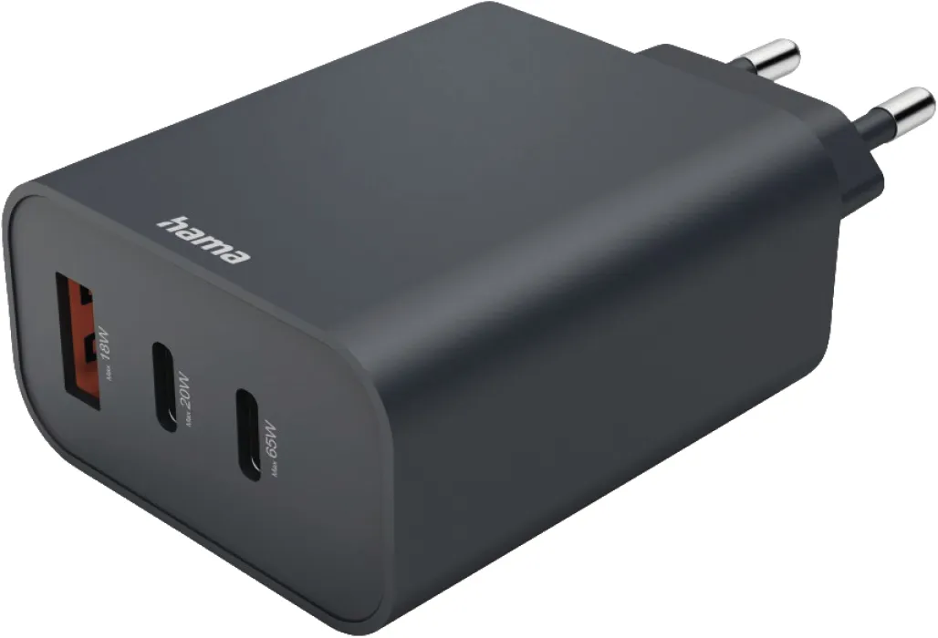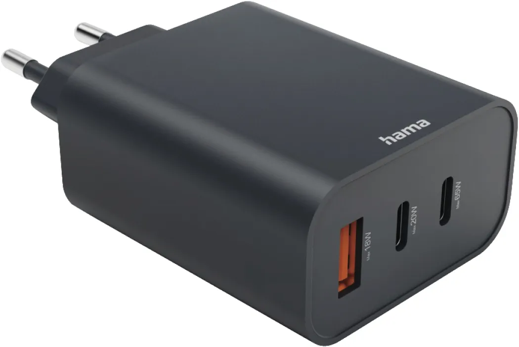Hama Schnellladegerät 86445, USB-C Ladegerät 65W PD, 2x USB-C & 1x USB-A