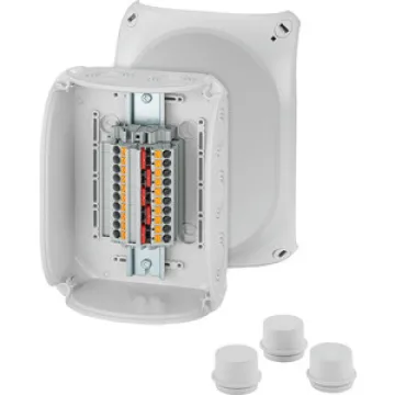 Verlassen Sie sich auf eine Abzweigdose, die mit ihrer optimierten Technik, robusten Bauweise und einfachen Handhabung punktet. Mit ihrem dezenten, grauen Design fügt sie sich unauffällig in jede Installation ein – ob im Haus, Keller, Technikraum oder geschützten Außenbereich.