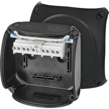 Mit Ihrer hohen Schutzart IP66 ist der Abzweigkasten optimal vor Staub und starkem Strahlwasser geschützt und damit für vielfältige Industrie- und Outdoor-Anwendungen bestens geeignet. Die innovative, 5-polige Klemmentechnik ermöglicht eine schnelle Verdrahtung von Leitern bis zu 10 mm². Mit sieben Kabeleinführungen und variabler Führung durch Bohrungen bietet der Kasten maximale Flexibilität bei der Elektroinstallation – perfekt für Elektriker, Anlagenbauer und Industrieunternehmen.