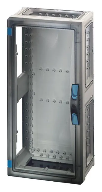 Das Aufputz-Gehäuse eignet sich optimal für den Bau von Installationsverteilern bis 250 A gemäß IEC 61439-3 und ist für die Bedienung durch Laien konzipiert. Die transparente Einzel-Tür ermöglicht jederzeit einen schnellen Überblick über den Innenraum – ideal für Wartung und Kontrolle. Dank der kompakten Maße von 270 x 540 x 186 mm (BxHxT) und einer Einbautiefe von 136 mm bietet das Gehäuse ausreichend Platz für Geräte, Reihenklemmen oder Sicherungskomponenten.