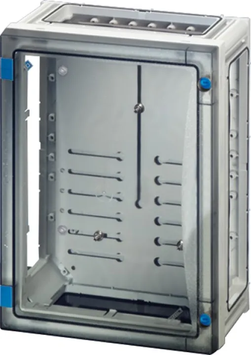Profitieren Sie von der durchdachten Kombinierbarkeit: Große Wanddurchführungen und ein cleveres Dichtungssystem ermöglichen den unkomplizierten Zusammenschluss mehrerer Gehäuse – ideal für Erweiterungen oder komplexere Installationen. Die Gerätebedienung ist bequem hinter der Tür möglich, und die transparente Ausführung erleichtert die Kontrolle.