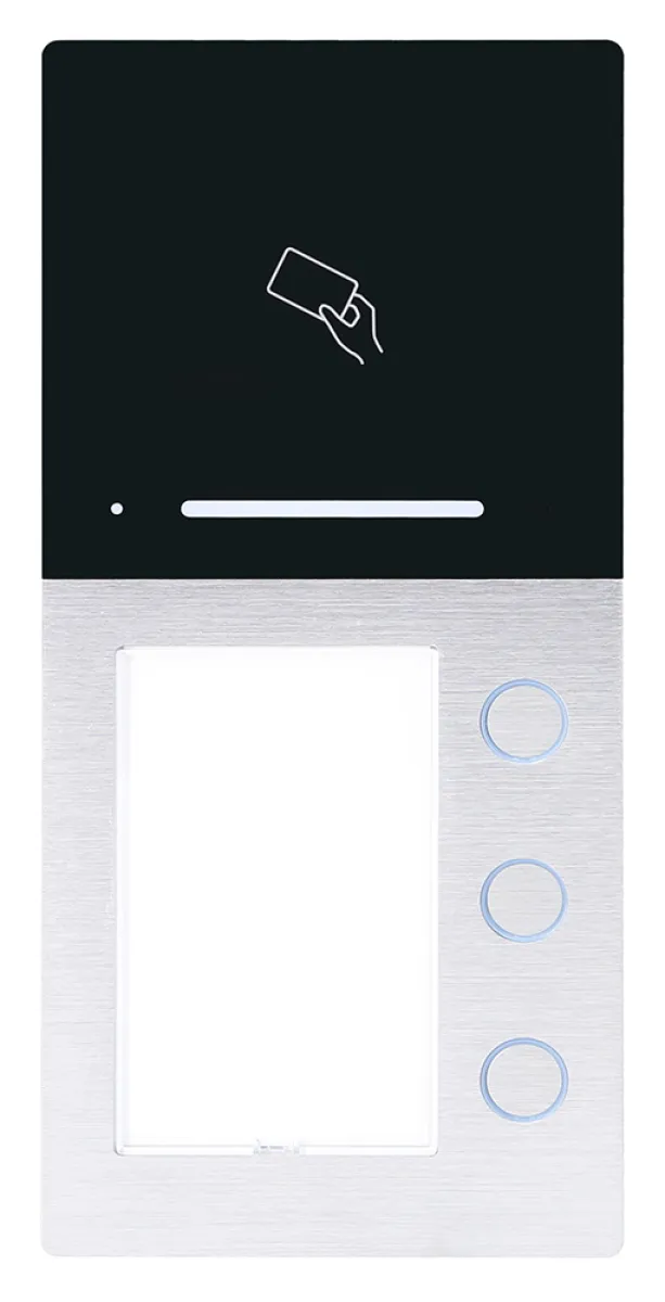 Entdecken Sie moderne Türkommunikation für Ihr Mehrfamilienhaus: Die HHG Außenstation Audio 3 Familien Villa Audio 3 AS RL vereint innovative Zutrittstechnologien mit hochwertigem Design. Dank integriertem RFID-Leser und Bluetooth®-App öffnen Sie Ihre Haustür bequem per Schlüsselanhänger, Karte oder Smartphone – ganz ohne klassischen Schlüssel.
