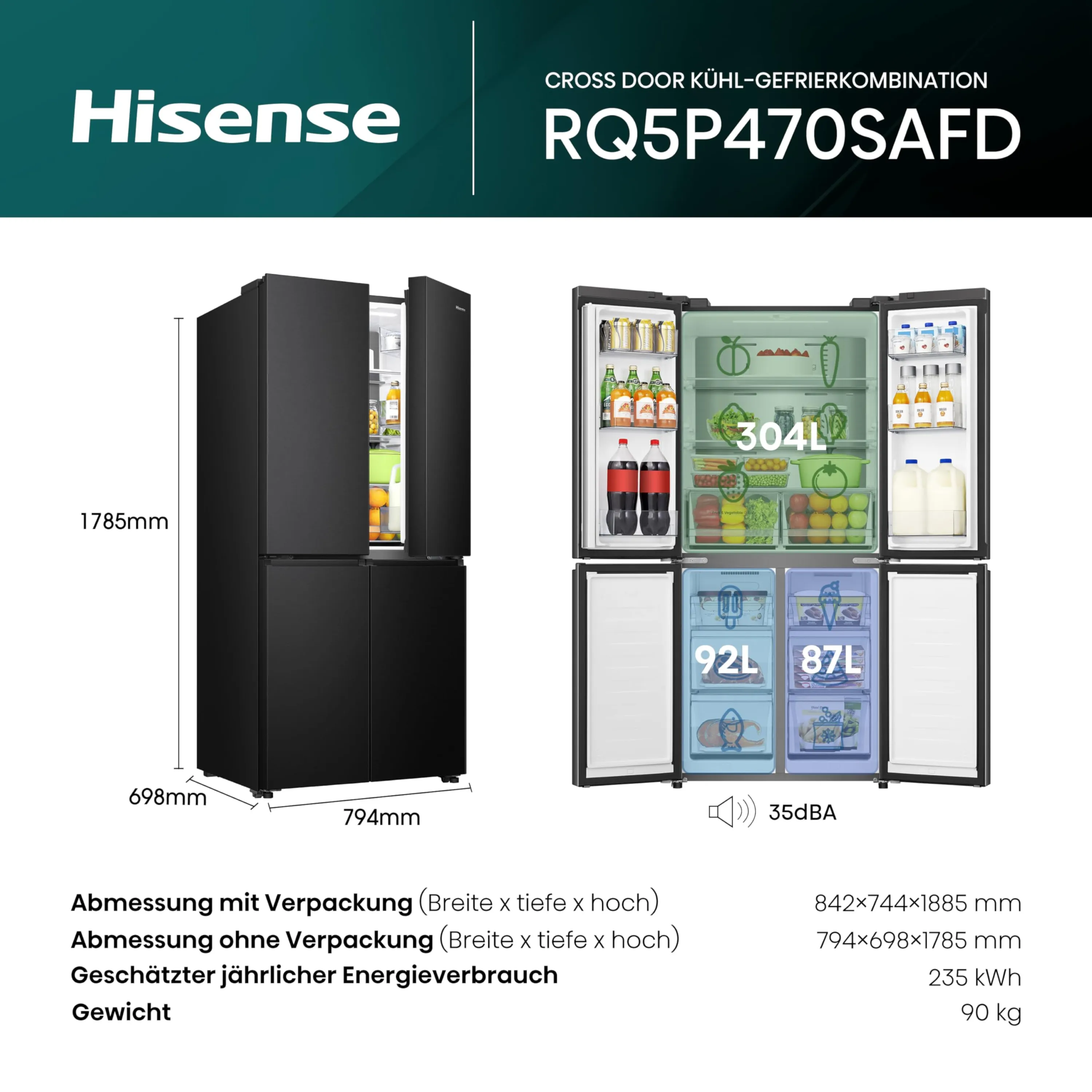 | Nutzinhalt des Kühlfachs | 304 Liter |