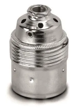Mit ihrem klassischen E27-Gewinde ist diese Fassung kompatibel mit allen gängigen LED-, Halogen- und Glühlampen und damit vielseitig einsetzbar. Die glatte Metall-Oberfläche sorgt nicht nur für ein elegantes Aussehen, sondern schützt die Fassung auch zuverlässig vor äußeren Einflüssen. Der stabile Porzellan-Isolierstein im Inneren gewährleistet höchste Sicherheit auch bei höheren Betriebstemperaturen.