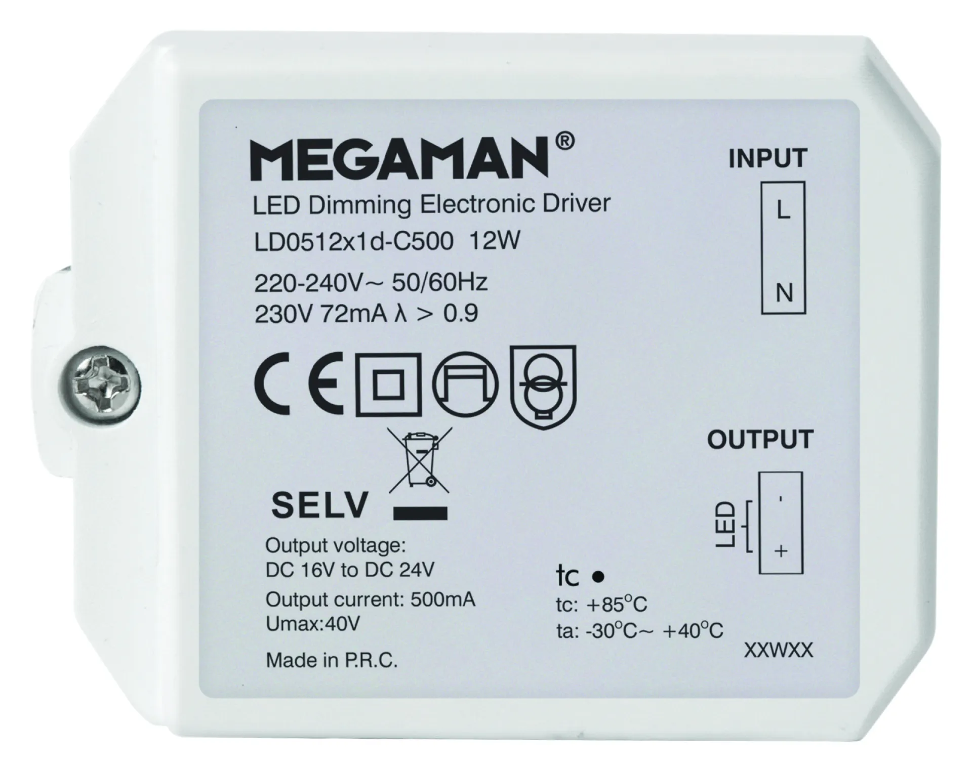 MEGAMAN LED-Treiber MM56018, 12W 500mA dimmbar, Konstantstrom 16-24V