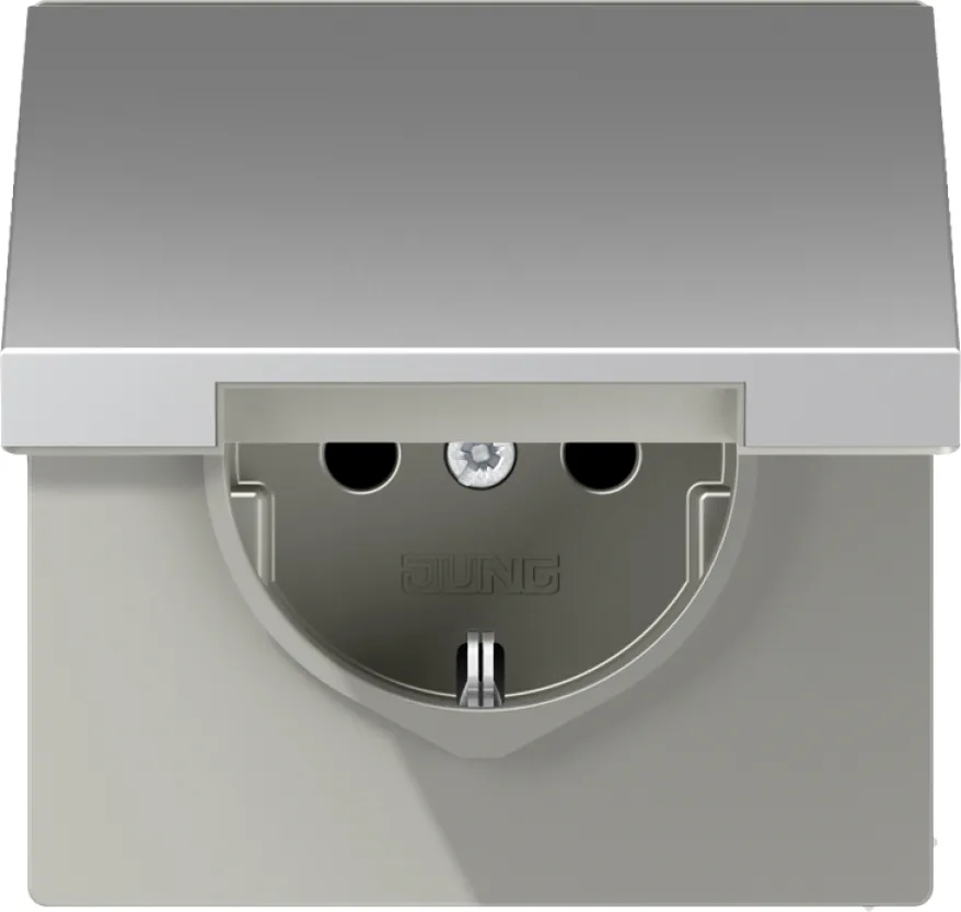 Elektrische Installationen müssen heute nicht nur zuverlässig, sondern auch ästhetisch sein. Mit der JUNG Schutzkontakt-Steckdose in edlem Aluminium machen Sie keine Kompromisse: Sie erhalten ein langlebiges Produkt, das dank durchdachter Technik höchste Alltagstauglichkeit garantiert. Die Montage gelingt einfach und sicher; der stabile Klappdeckel schützt Kinder und Haustiere zuverlässig vor ungewolltem Kontakt mit dem Strom.