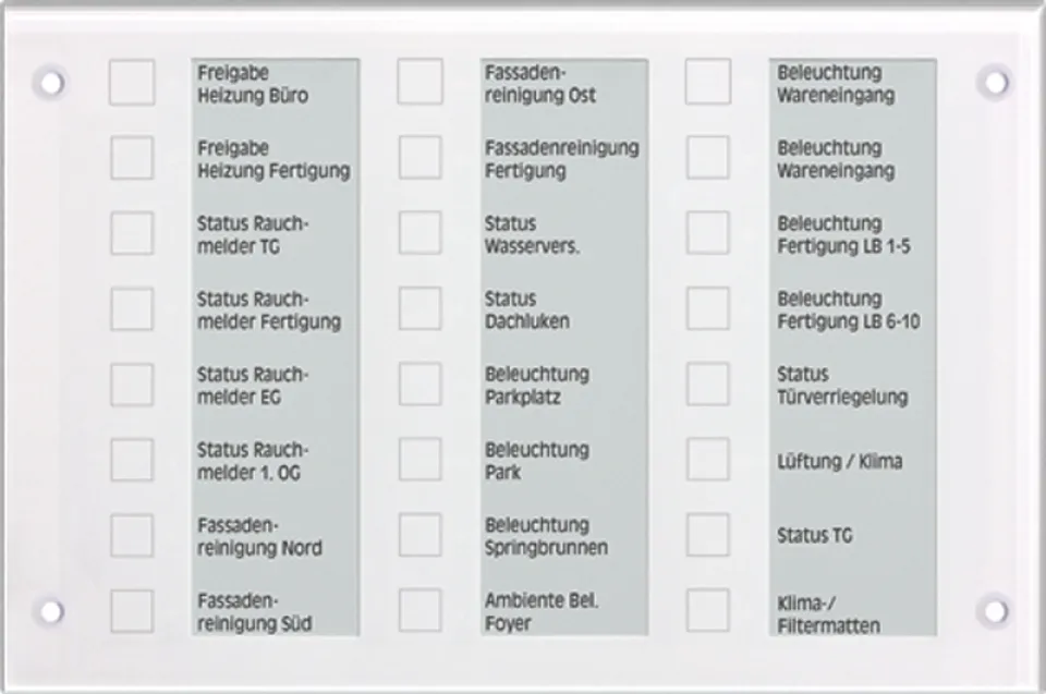 Das JUNG KNX Melde- und Bedientableau MBT2424WW in edlem Glas alpinweiß ist die ideale Lösung für moderne KNX-Gebäudesteuerung. Mit 24 kapazitiven Sensortasten und individuell einstellbaren RGB-LEDs bietet das Tableau maximale Flexibilität für die zentrale Steuerung von Licht, Jalousien, Szenen und weiteren Funktionen – perfekt für Smart Homes, Büros, Hotels oder öffentliche Gebäude.