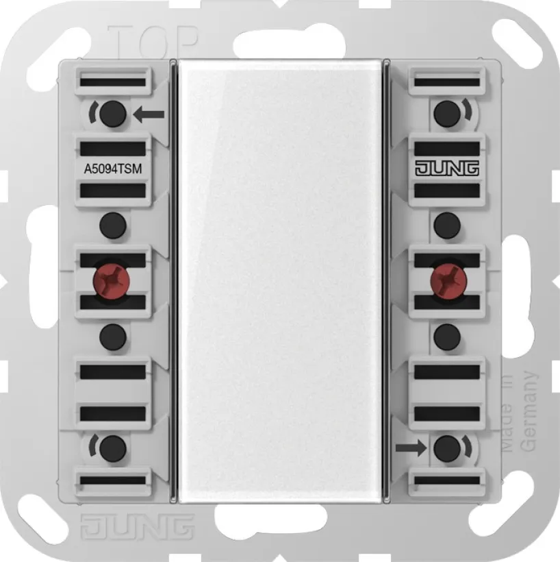 Das Jung KNX Tastsensor-Modul Universal A5094TSM 4fach ist die ideale Lösung für die komfortable und flexible Steuerung moderner KNX-Systeme. Mit bis zu acht frei belegbaren Bedienpunkten ermöglicht das 4-fach Tastermodul die intuitive Bedienung von Licht, Jalousien, Heizung oder individuellen Szenen – ganz nach Ihren Wünschen. Die innovative KNX-Technologie sorgt für zuverlässige Funktion und nahtlose Integration in Ihr Smart Home oder Ihre gewerbliche Gebäudeautomation.
