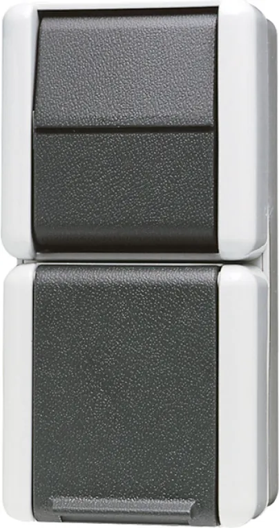 Dieses hochwertige Aufputz-Element vereint einen Wechselschalter mit einer SCHUKO-Steckdose (16A, 250V) und bietet Ihnen damit maximale Flexibilität zur Steuerung und Stromversorgung. Das Gehäuse aus widerstandsfähigem und bruchsicherem Thermoplast in eleganter grau/anthrazit Optik (RAL 7035) trotzt Feuchtigkeit, Spritzwasser, Stößen, UV-Strahlung und vielen Chemikalien – perfekt für langfristigen, sicheren Einsatz.