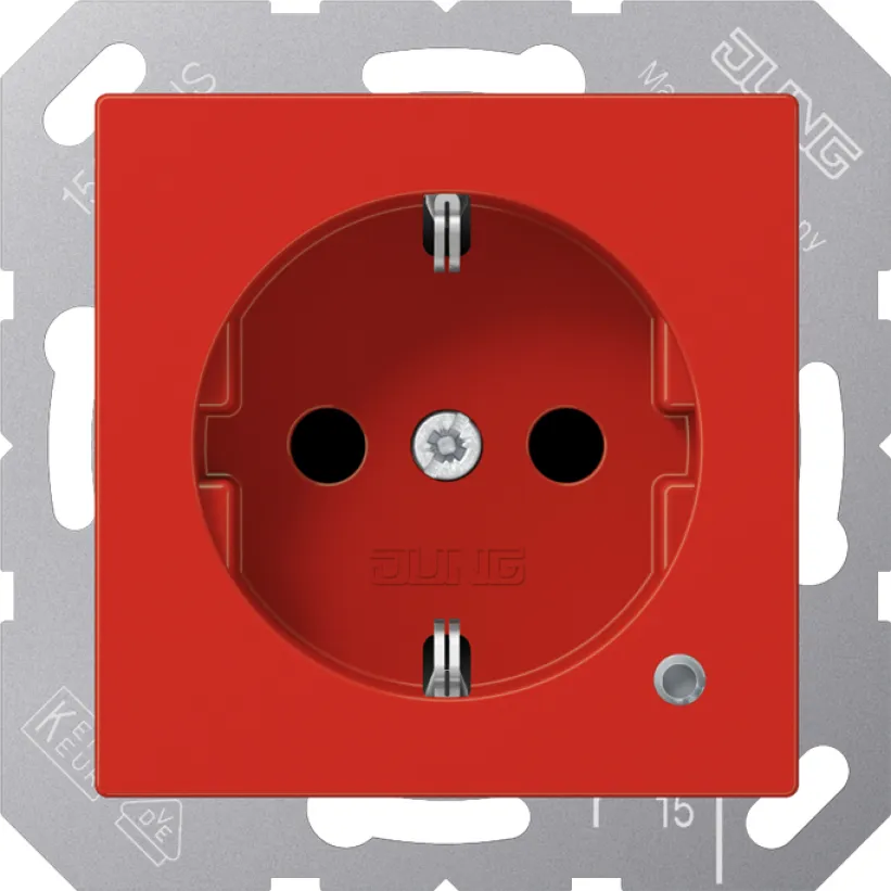 Entdecken Sie die hochwertige JUNG A 1520 BFKO RT SCHUKO-Steckdose für Ihre Elektroinstallation – die ideale Steckdose für besondere Sicherheitsanforderungen mit integriertem Berührungsschutz und praktischer Funktionsanzeige. Die auffällige rote Farbe und das glänzende Design machen diese Unterputz-Steckdose nicht nur sicher, sondern auch zu einem Hingucker und Orientierungspunkt in technischen Räumen, Krankenhäusern oder Laboren.