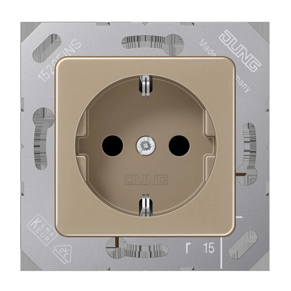 Diese SCHUKO Steckdose eignet sich hervorragend für alle, die Wert auf zuverlässige und normgerechte Elektroinstallationen legen. Ob zur Sanierung, im Neubau, in Wohnräumen oder Arbeitsbereichen – mit dieser Unterputz-Steckdose setzen Sie auf Markenqualität und zeitloses Design. Dank der dezenten, glänzenden Oberfläche in Bronze-Beige werten Sie Ihre Raumgestaltung auf und sorgen zugleich für ein stimmiges Gesamtbild in Kombination mit anderen Elektroinstallationselementen.