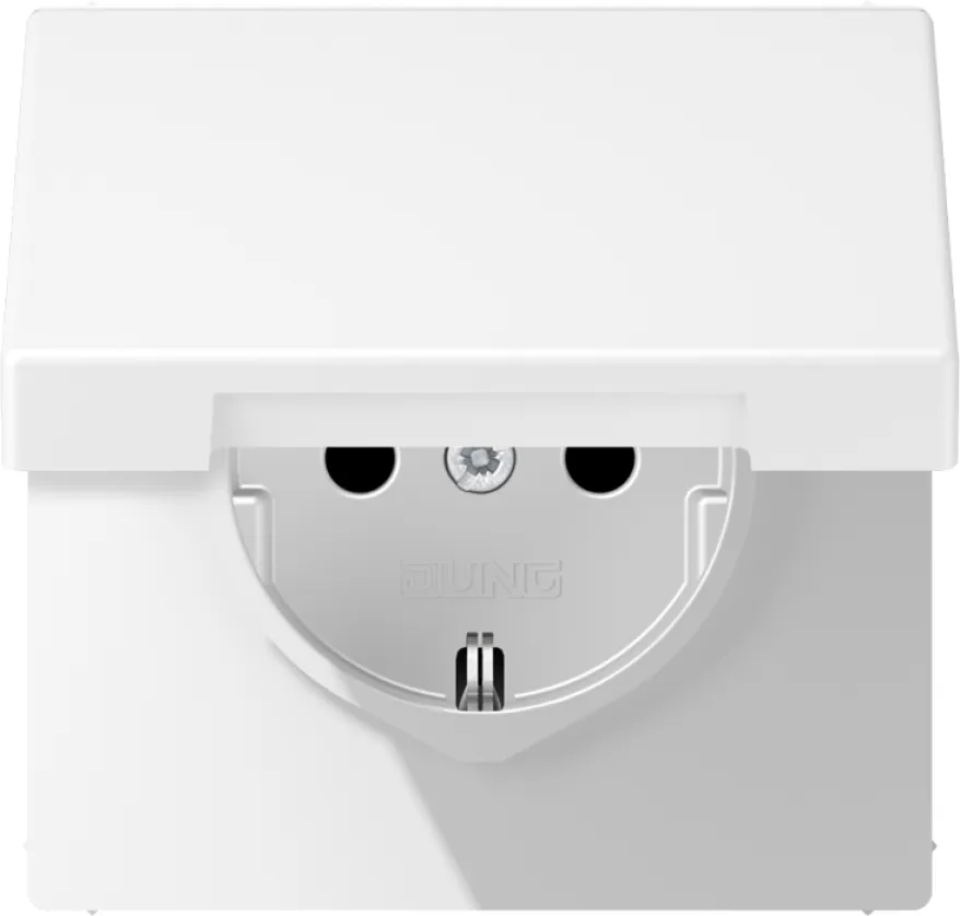 Die JUNG SCHUKO Steckdose LS1520BFKIKLWWM mit Klappdeckel in schneeweiß matt vereint modernes Design mit hoher Sicherheit. Sie eignet sich ideal für Feuchträume, Keller, Werkstätten oder überdachte Außenbereiche und bietet zuverlässigen Stromanschluss sowie effektiven Berührungsschutz nach aktuellen Standards.