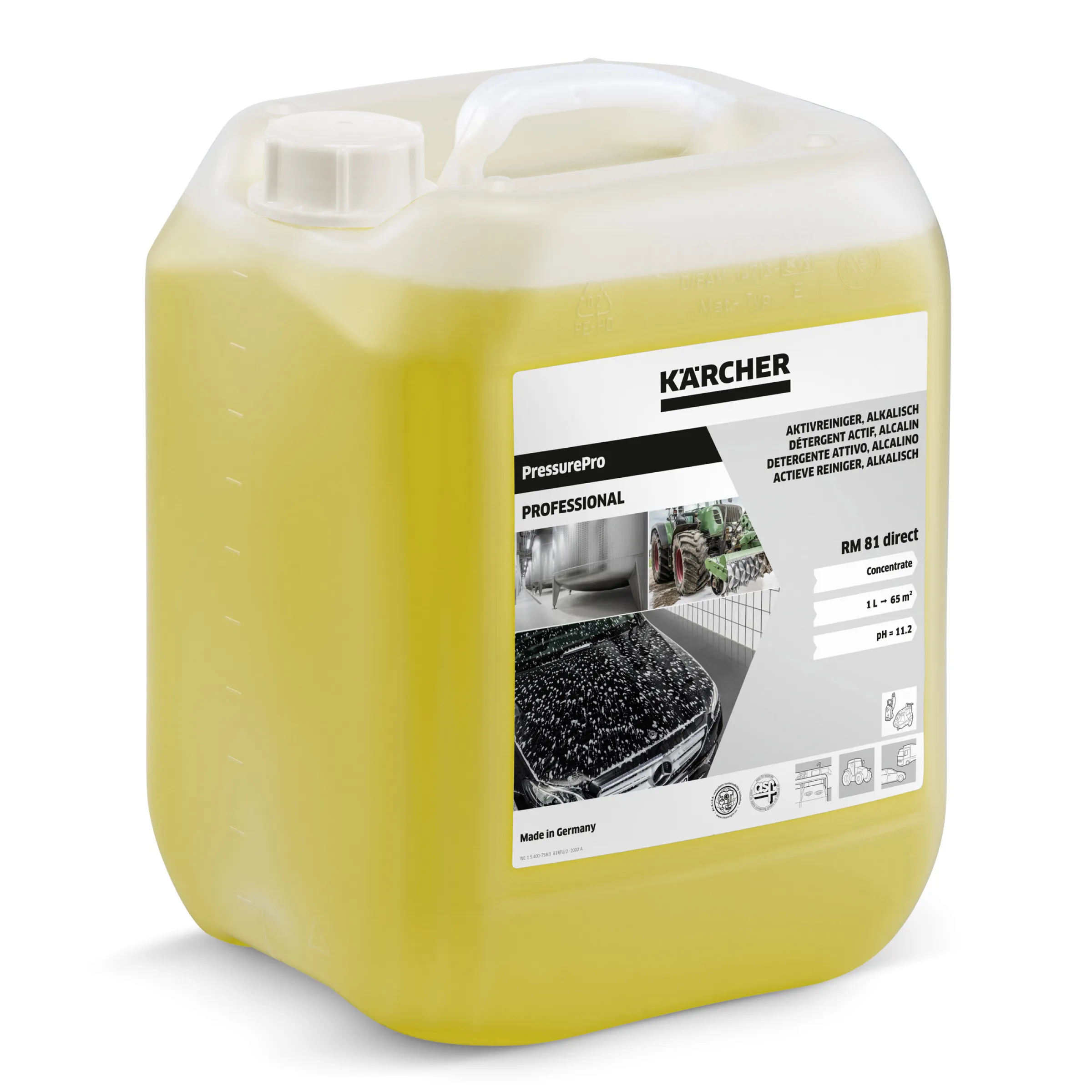 Erleben Sie mit dem Kärcher RM 81 direct Aktivreiniger alkalisch 6.296-123.0 kraftvolle Reinigungsergebnisse für anspruchsvolle Schmutzprobleme. Dieses professionelle Hochdruckreinigungsmittel entfernt zuverlässig selbst hartnäckige Öl-, Fett- und Mineralverschmutzungen – ideal für Landwirtschaft, Baugewerbe und Werkstätten.