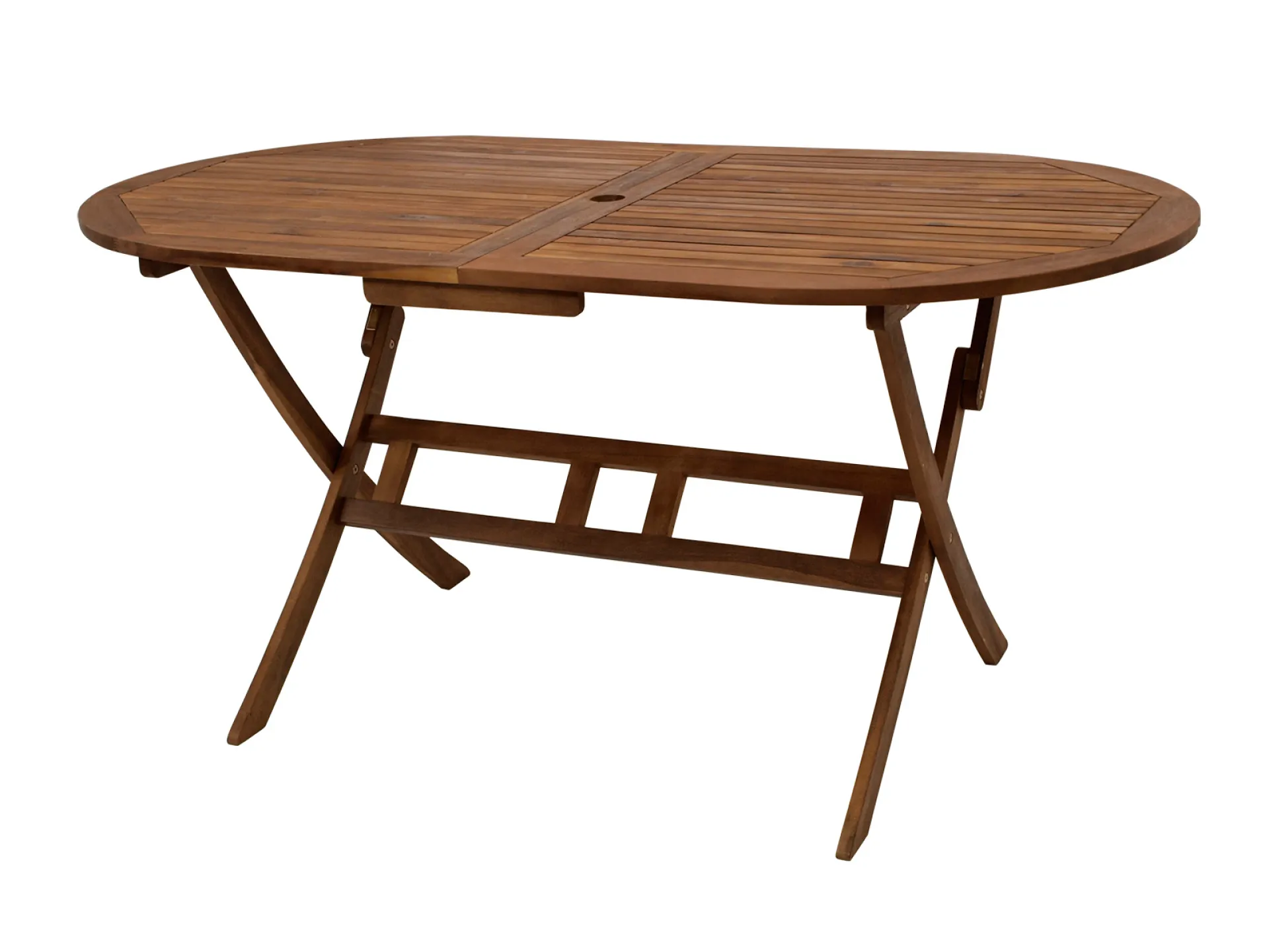 Mit seinen großzügigen Maßen von 160 x 85 cm bietet der ovale Klapptisch ausreichend Platz für Familie und Freunde. Dank integriertem Schirmloch ist auch an heißen Sommertagen für angenehmen Schatten gesorgt. Die edle geölte Oberfläche schützt das FSC®-zertifizierte Akazienholz zuverlässig vor Wind und Wetter und bringt die natürliche Maserung besonders schön zur Geltung.