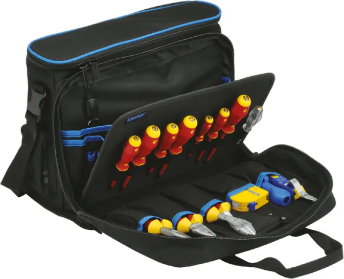 Sichere dir jetzt die Klauke 15-tlg. Techniker-Profitasche KL905B15 und bringe Ordnung, Sicherheit und Professionalität in deinen Werkzeugalltag!