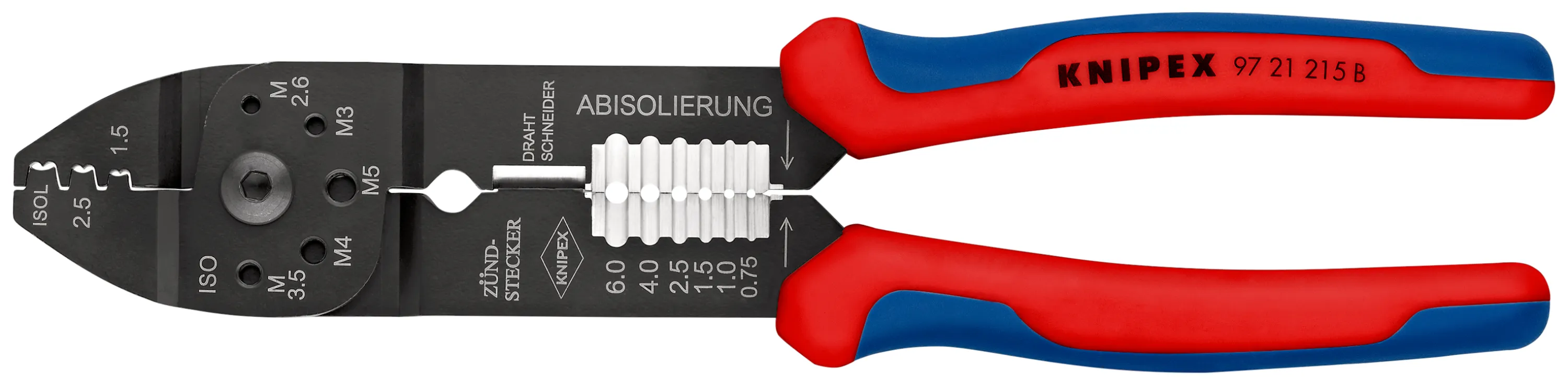 KNIPEX Crimpzange 97 21 215 B, Kabelschneider, Abisolierer & Crimper, 0,5-2,5 mm²