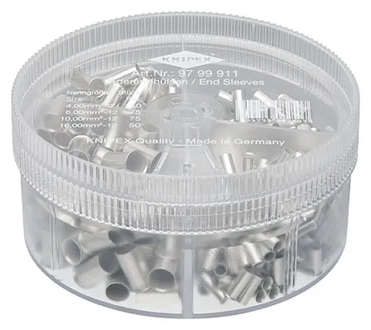 KNIPEX Sortimentsbox 97 99 911, 350 unisolierte Aderendhülsen, Ø 90 mm