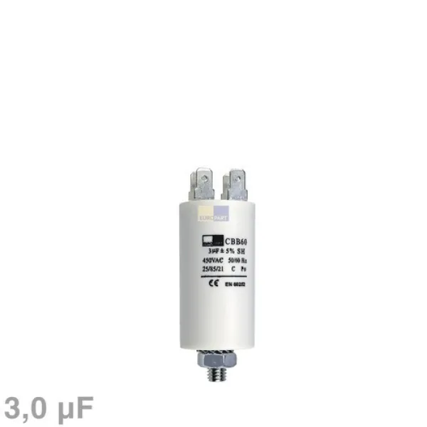 Kondensator 3,00µF 450V Universal mit Steckfahnen und Befestigungsschraube CBB60