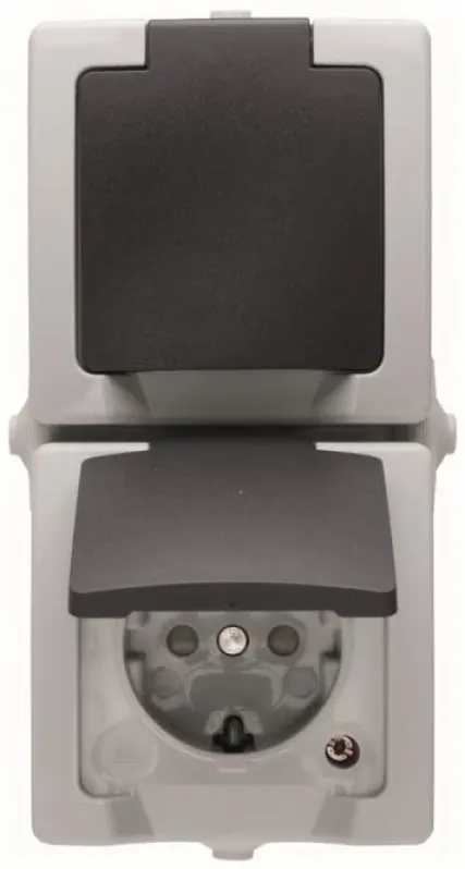 Kopp Steckdose 2-fach senkrecht 136956008, SCHUKO Aufputz IP44, Klappdeckel