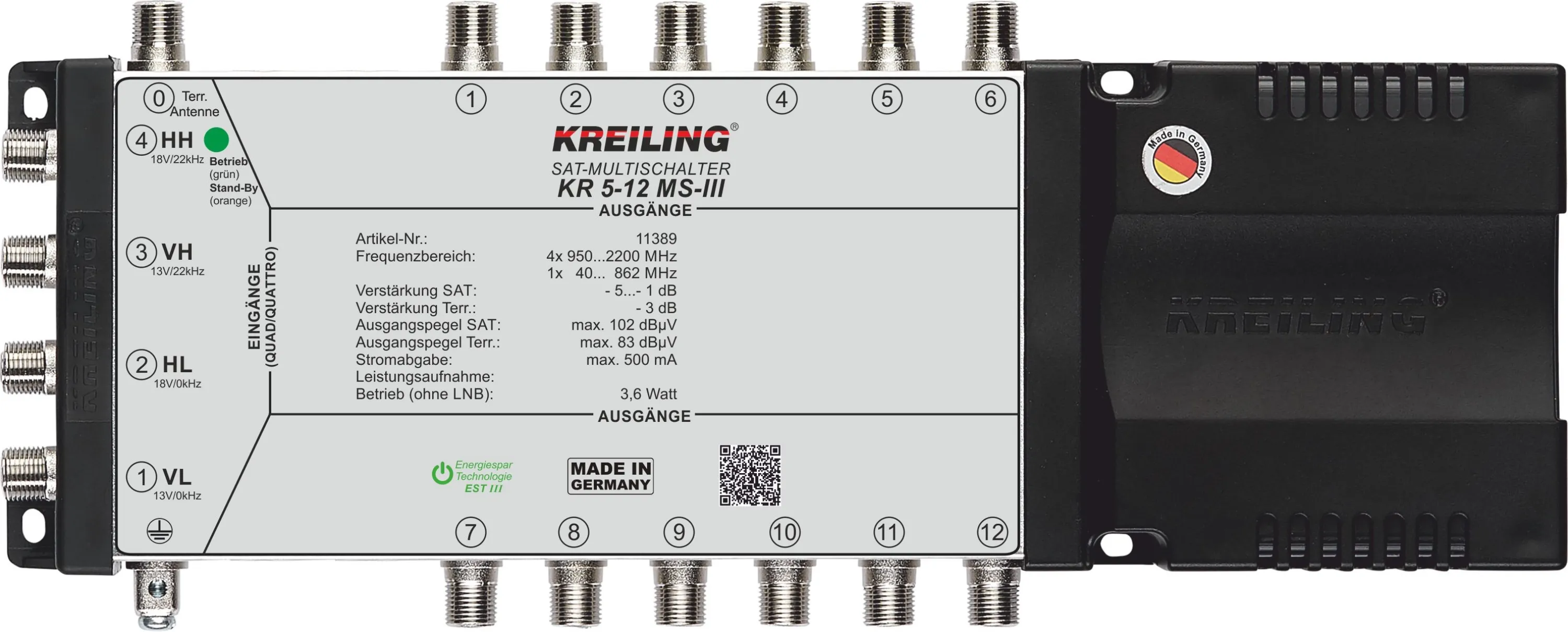 Kreiling Multischalter KR 5-12 MS-III, SAT Verteiler 12 Teilnehmer, 5 Eingänge