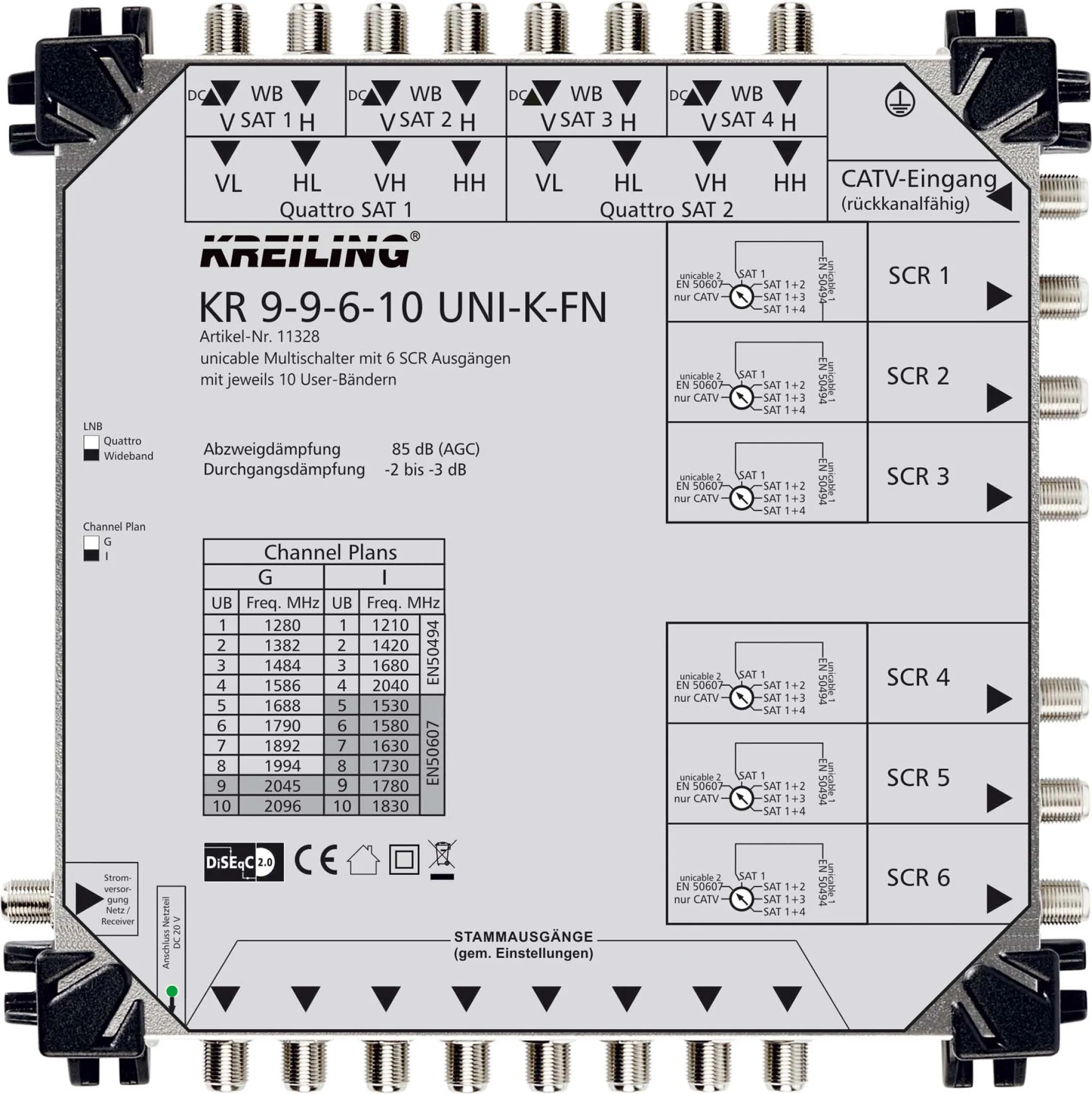 Ob für die Versorgung mehrerer Parteien, die Erweiterung großer Gebäudekomplexe oder den Austausch älterer Anlagen – der Kreiling Unicable Multischalter KR 9-9-6-10 UNI-K-FN überzeugt durch benutzerfreundliche Handhabung und automatische Programmierung. Stabile Signalpegel und geringe Durchgangsdämpfung sorgen für beste Bild- und Tonqualität. Die Möglichkeit zur Kaskadierung bietet maximale Flexibilität bei Erweiterungen.