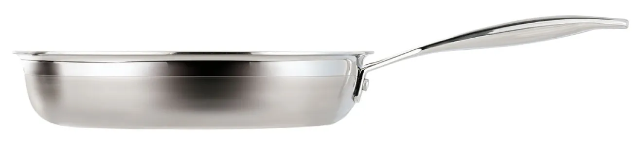 Das hochwertige 3-ply Mehrschichtmaterial zeichnet sich durch eine hervorragende Wärmeleitfähigkeit und -speicherung sowie gleichmäßige Wärmeverteilung aus. Zeit- und energiesparend einsetzbar, eignet es sich für alle Herdarten, inklusive Induktion.