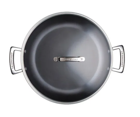 Die Profipfanne - von Profis für Profis - ist ein echter Allrounder: zum Kochen, Schmoren, Braten auf dem Herd, überbacken im Ofen und stilvollen Servieren auf dem Tisch. Die große Innenfläche sorgt für eine gleichmäßige Bräunung. Mit zwei ergonomischen Seitengriffen zum einfachen Heben - ideal für den Backofen. Inklusive Glasdeckel.