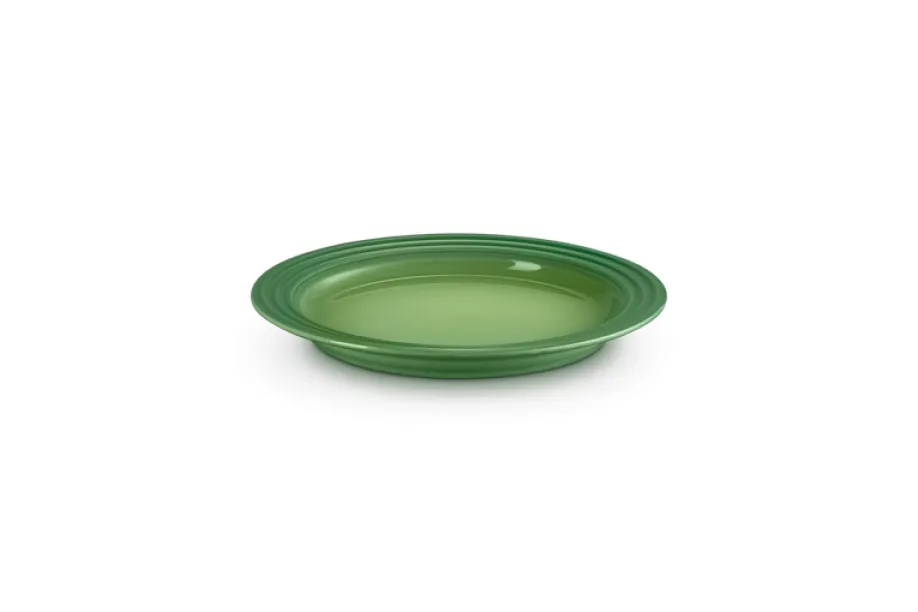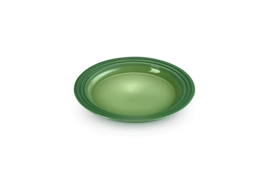 Mit seiner Farbgebung Bamboo vereint der Teller Eleganz und Natürlichkeit. Die harmonisch abgestimmte Glasur setzt einen frischen, modernen Akzent und fügt sich perfekt in jede Küchenumgebung ein. Die berühmten drei Ringe am Tellerrand unterstreichen das zeitlose Le Creuset Design und machen ihn zu einem Blickfang auf jedem Tisch.