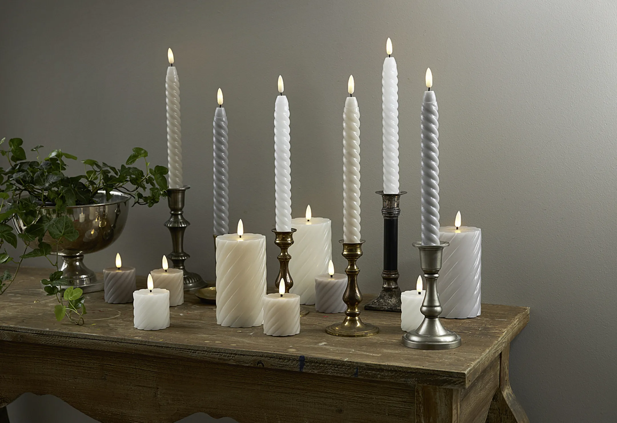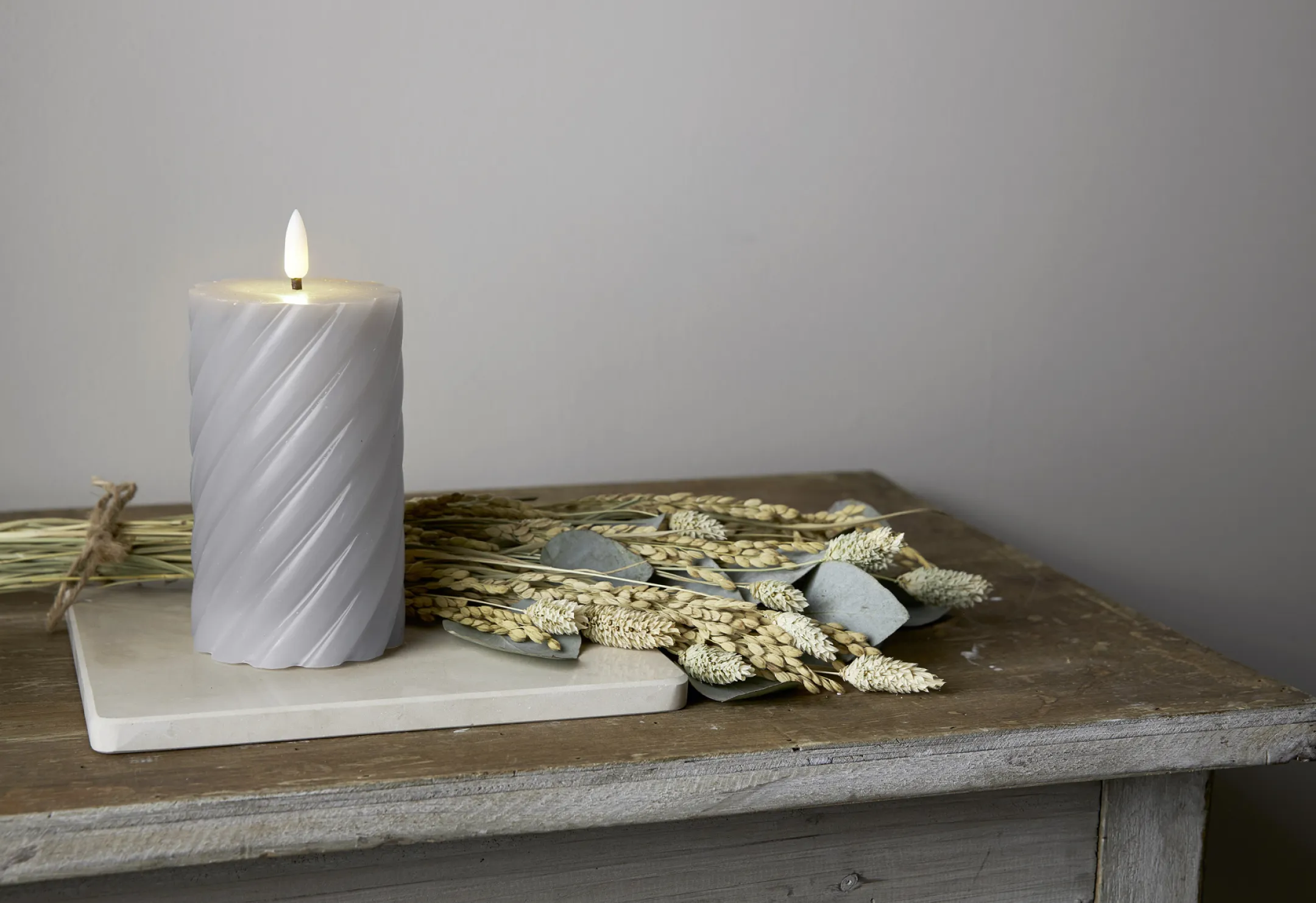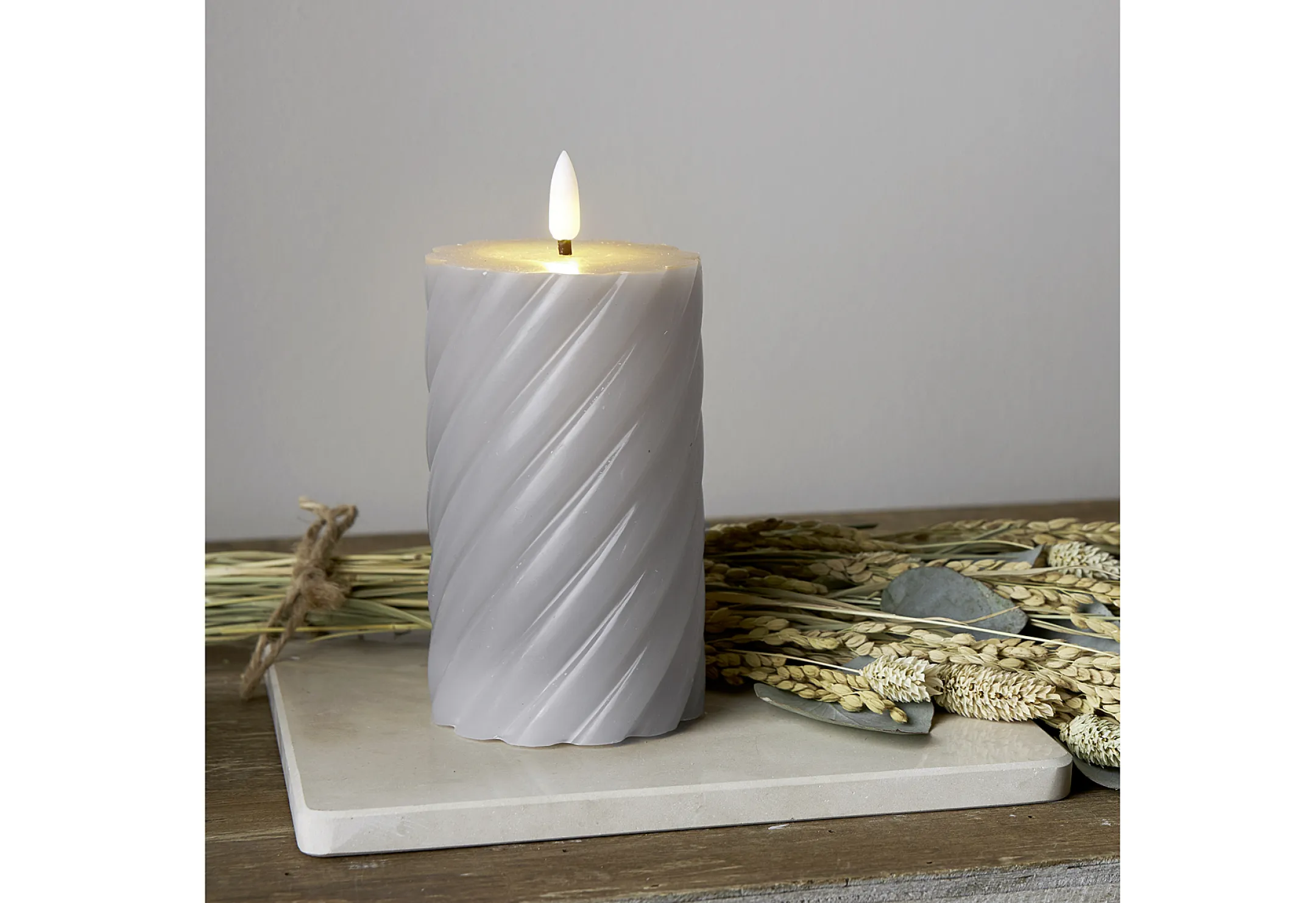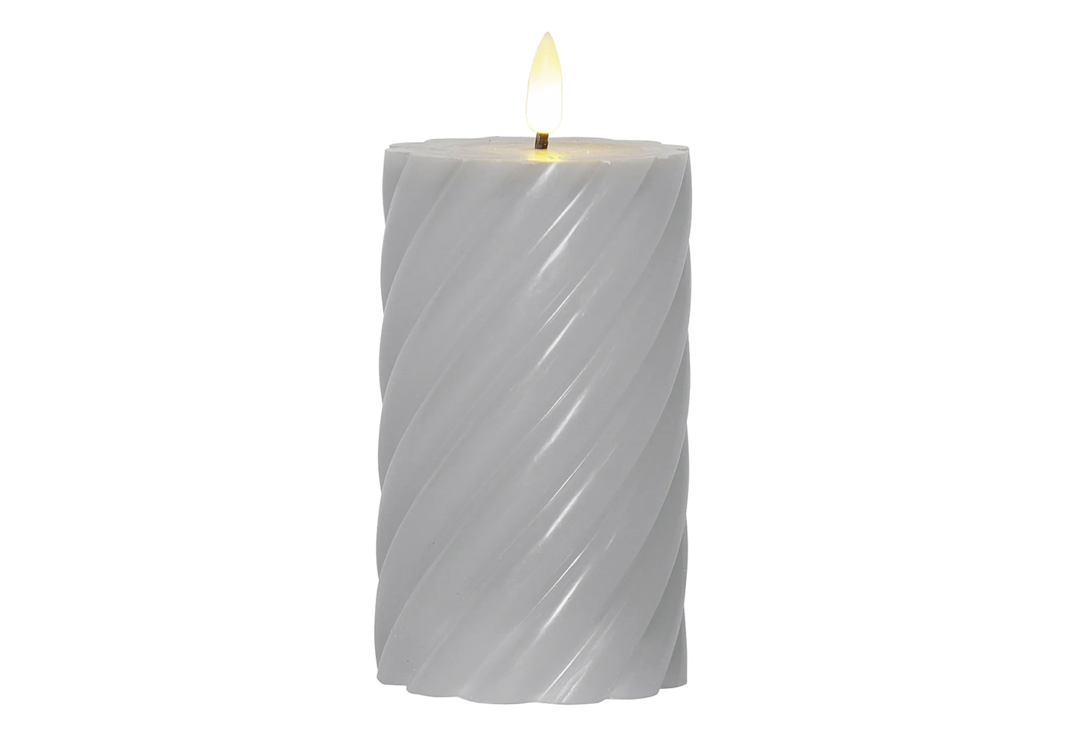 Machen Sie Ihr Zuhause jetzt noch gemütlicher – bestellen Sie die LED-Kerze „Flamme Swirl“ in edlem Grau!