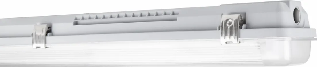 Die DAMP PROOF HOUSING GEN 3 1500 P 2XLAMP IP65 ist die robuste und flexible Feuchtraumleuchte, wenn es darauf ankommt, Arbeitsbereiche, Lager oder Parkgaragen zuverlässig und effizient zu beleuchten. Dank innovativer werkzeugloser Steckklemmen und durchdachtem Gehäusedesign erfolgt die Installation sauber, einfach und zeitsparend – für maximale Sicherheit und starke Lichtleistung genau dort, wo Sie es brauchen.