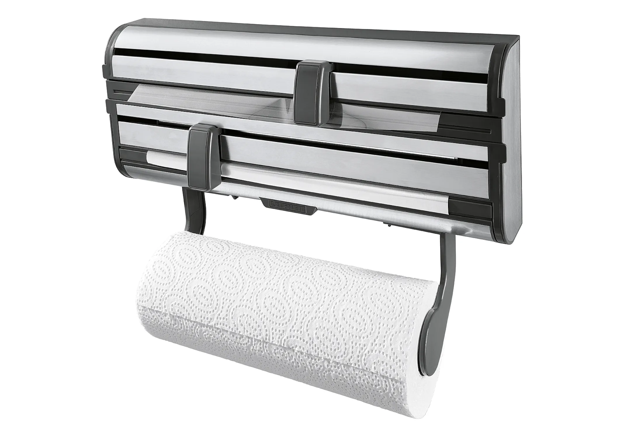 Leifheit Wandrollenhalter Parat Royal 2.0 25793, Folienschneider für 3 Rollen, Edelstahl