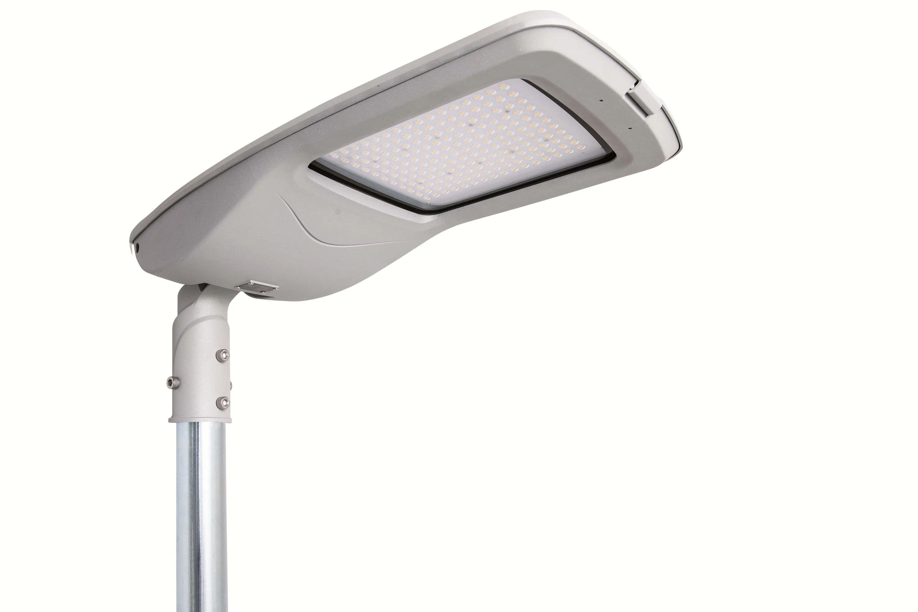Dank präziser Linsentechnik gewährleistet die RoadLUX PRO eine breite, gleichmäßige Lichtverteilung (75° × 150°) ohne Streuverluste. Die Leuchte ist flexibel als Mastaufsatz- oder Mastansatzleuchte einsetzbar und lässt sich im Winkel von +/−15° anpassen – ideal für individuelle Beleuchtungskonzepte. Die Installation erfolgt einfach per Steckklemme und ist für Mastdurchmesser von 42–60 mm geeignet.