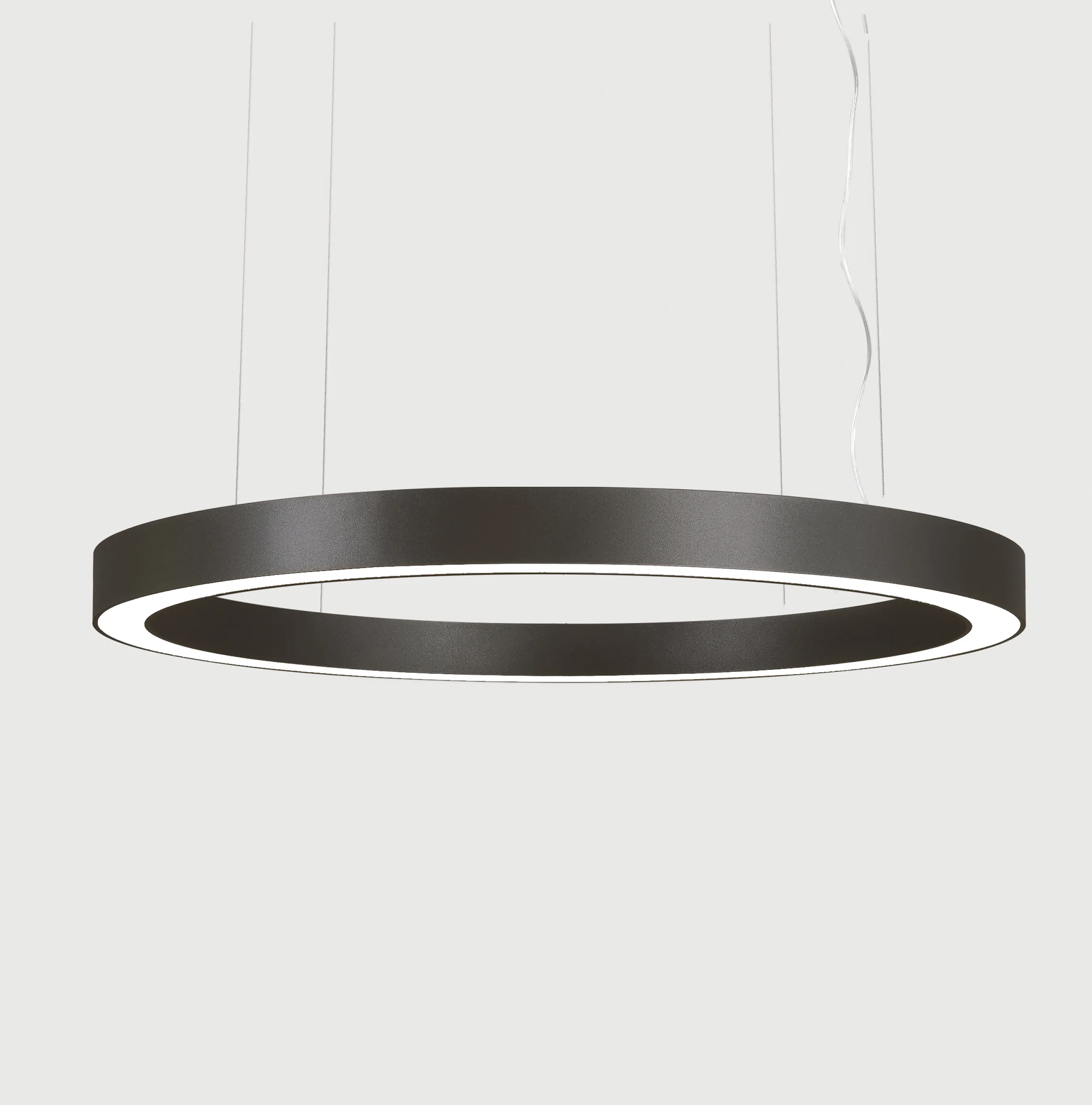 Ringo Star-P3. LED. Leuchte für Pendelmontage. Leuchtenkörper aus Aluminiumprofil mit 60mm Lichtspurbreite. Oberfläche Jet Black. Lichtcharakteristik: Direkt-/ indirektstrahlend. Farbtemperatur: 4000K (Cool White). Farbwiedergabeindex (Ra): >80. Opaldiffusor für max. Transmissionsgrad bei homogener Auflösung der Lichtpunkte. Dimmbar DALI. DxHxB (rund). D=900mm. B=60mm. H=85mm. Seilabhängung mit Zuleitung und Baldachin für Parallelmontage (Set). Pendellänge max 4000mm. Zuleitung: transparent. Baldachin: passend zu Leuchtenoberfläche. Medium-Power-Bestromung. 11090lm. 99W. 9kg. Binning initial <= MacAdam 3. IP20. Schutzklasse I. CE-, UKCA Kennzeichnung. IK02. 220-240V. 50-60 Hz. RG0 (EN62471). Lichtstromrückgang von max. 0,3%/1.000 Betriebsstunden. Nennausfallrate von max. 0,2%/1.000 Betriebsstunden. L85B10 (tq 25°C) = 50.000h. Hersteller: Lightnet GmbH, nach ISO 9001:2015 und 50001:2018 zertifiziert.