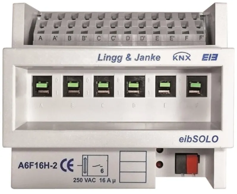 Der Lingg&Janke KNX Schaltaktor 6-fach A6F16H-2 überzeugt als moderne Schaltlösung für anspruchsvolle KNX-Installationen in smarten Gebäuden. Mit seiner ausgefeilten Technik und verbesserten Benutzerfreundlichkeit ermöglicht dieser Schaltaktor zuverlässiges Schalten von bis zu sechs unabhängigen Stromkreisen – auch bei hohen Schaltlasten und ohne aktive Busspannung.