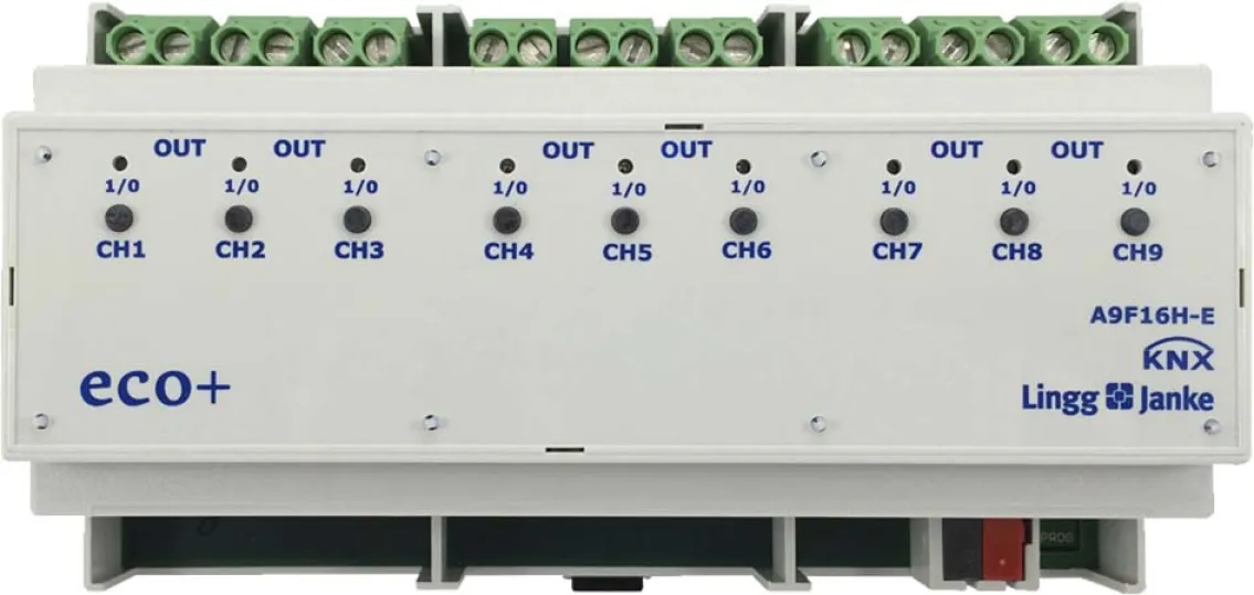 Jetzt bei smartgoods.de aus Dresden – optimieren Sie Ihr KNX-System mit dem Lingg&Janke Schaltaktor 9-fach eco+ A9F16H-E für moderne und sichere Gebäudeautomation!