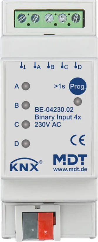 MDT BE-04230.02 KNX Binäreingang 4-fach REG 2TE 230V AC, LED-Anzeige, Taster/Schalter Fensterkontakt