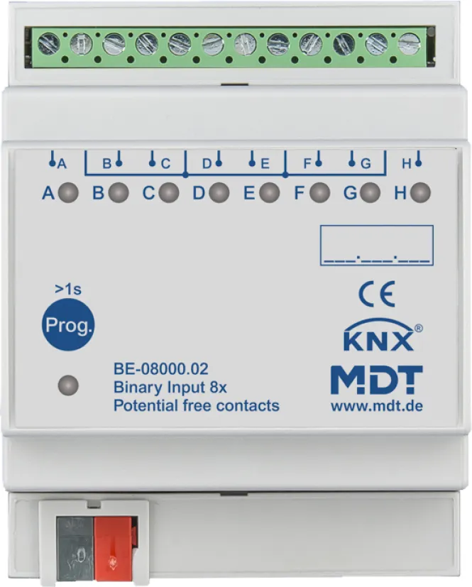 Dank modernster Technik und durchdachtem Design überzeugt der Binäreingang mit zuverlässiger Erfassung und Weiterleitung von Schaltsignalen. Die kompakte Bauform nimmt nur 4 Teilungseinheiten im Schaltschrank ein und sorgt mit acht separaten LED-Anzeigen für volle Übersicht über den Status aller angeschlossenen Kontakte.