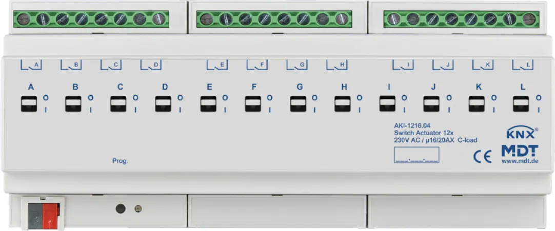Bestellen Sie den MDT AKI-1216.04 Schaltaktor 12-fach jetzt bei smartgoods.de in Dresden und bringen Sie Ihre KNX-Gebäudeautomation auf das nächste Level!